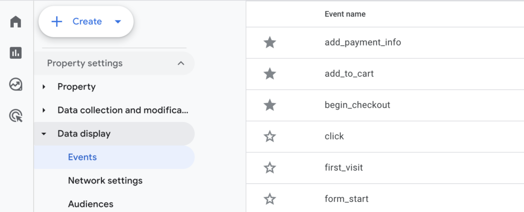 In the same Events screen, look for a column labelled “Mark as key event.” Google renamed this from “Conversions” in 2024 (you can read about the change in Google’s key events documentation), so if you see the old label, it is the same thing. Toggle it on for every event that represents a meaningful business action.