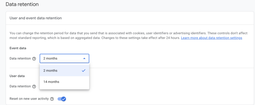 GA4 defaults to 2-month event data retention. This means your Exploration reports (the custom, flexible reports where you do actual analysis) only have access to the last 2 months of event-level data. Standard reports use aggregated data, so they are not affected. But the moment you need to build a custom funnel, compare user segments, or look at behaviour paths over time, you are limited to 60 days.