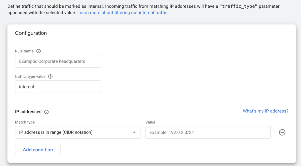 If you see “Internal Traffic” listed but the status says “Testing” rather than “Active,” your own team’s visits are mixed into your real traffic data. Pageviews are inflated. Conversion rates are skewed. Engagement metrics do not reflect your actual customers.